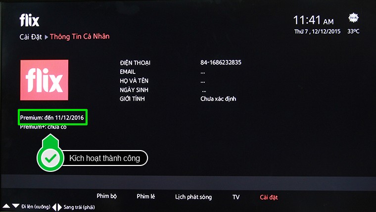 Trên đây là các bước để bạn đăng ký và kích hoạt tài khoản VIP Flix TV trên Smart tivi Samsung 2015. Chúc bạn thành công!
