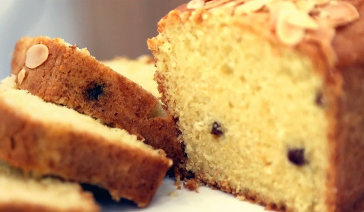 Trút bột vào khuôn nướng, trải hạnh nhân lát lên trên mặt bột, đập đập khuôn nướng để dàn mỏng bột ra. Cho bánh vào lò nướng, vặn thời gian từ 40 đến 55 phút, tuỳ theo kích thước khuôn bánh.