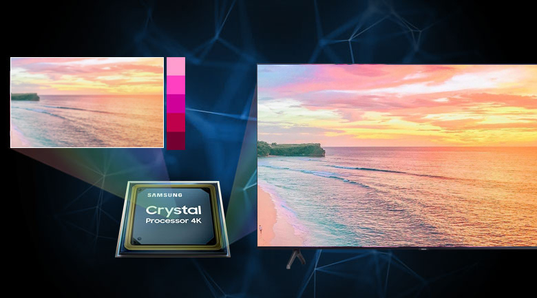 - Bộ xử lý Crystal Processor 4K, nâng cấp AI với đa trí tuệ với 1 mạng thần kinh mô phỏng hỗ trợ trên các dòng Crystal UHD 4K, UHD 4K (AU9000, AU8000, AU7000).