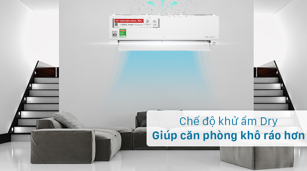 Chế độ khử ẩm hay chế độ làm lạnh khô (Dry) sẽ giúp hút hết hơi ẩm trong không khí, giúp căn phòng trở nên khô ráo và mang lại bầu không khí trong lành hơn, dễ chịu hơn. Đặc biệt là những ngày mưa gió thì chế độ này rất thích hợp.