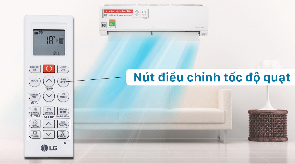 Khi chọn chế độ làm lạnh nhanh Jet Cool, máy sẽ chạy với tốc độ quạt mạnh nhất, mang lại luồng khí mát lạnh cho căn phòng của bạn nhanh chóng. Đồng thời, hướng gió được thổi xa đến 9 mét giúp tạo cảm giác mát lạnh tức thì bất cứ đâu trong phòng.