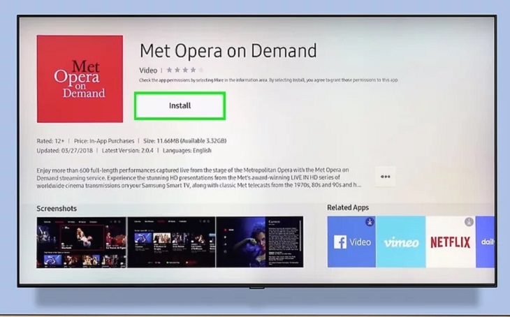 Nút này nằm dưới tên ứng dụng. Sau khi chọn Install, ứng dụng sẽ được tải về TV.