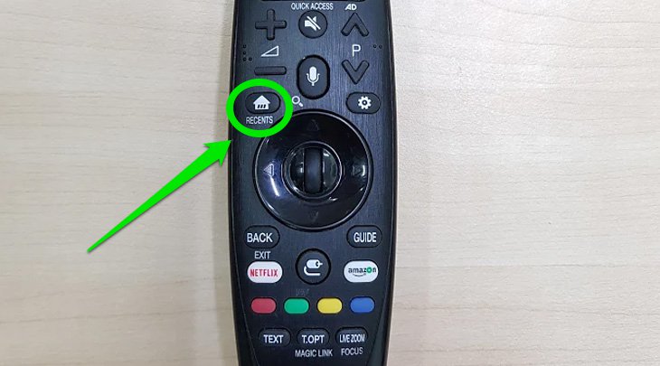 Bước 1: Bạn nhấn nút "RECENTS" có hình ngôi nhà trên remote để vào giao diện Home trên tivi.