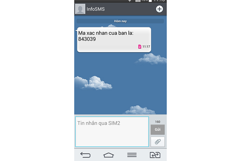 Sau khi bạn đăng ký tài khoản bằng số điện thoại của mình, bạn sẽ nhận được một tin nhắn gởi đến bạn mã xác nhận. Bạn nhập mã xác nhận này rồi sang bước tiếp theo.