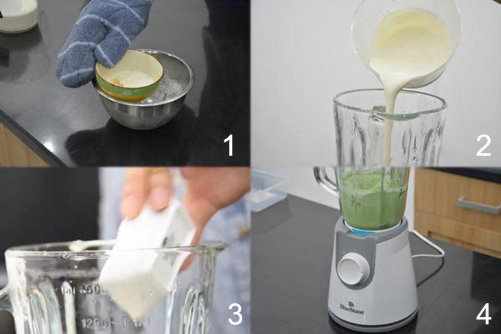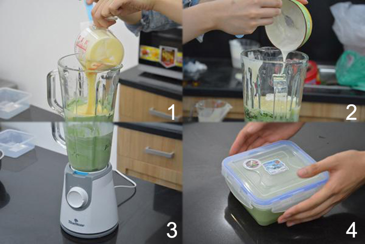 Xay cho hỗn hợp hòa quyện rồi tắt máy, cho vào hộp đem bỏ vào ngăn đông tủ lạnh