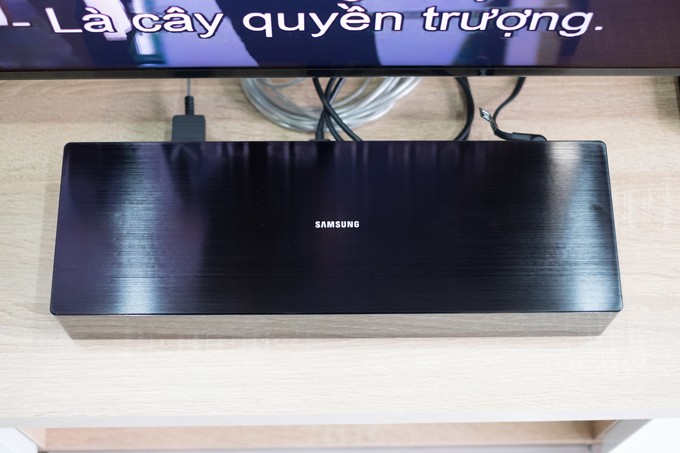 Chân đế cũng đóng góp một phần trong nỗ lực giấu dây, khiến người xem phía trước có cảm giác gọn gàng. Mẫu QLED mới này tiếp tục sử dụng công nghệ cáp Samsung Invisible Connection để kết nối với hộp One Connect Box. Có thể thấy, nguyên lý thiết kế cũng được áp dụng cho phần này khi các góc được tạo bởi khá "sắc" và tối giản.
