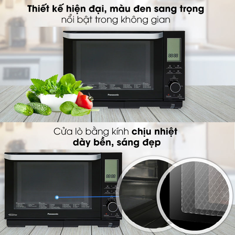 Công nghệ Inverter, năng lượng vi sóng giúp lò nướng hấp đối lưu Panasonic nấu thức ăn nhanh chóng. Trong khi đó với chức năng nướng giúp sẽ giúp các món nướng chín vàng và giòn ngon hơn. Có thể kết hợp các chế độ nấu cùng một lúc sẽ giúp ngắn thời gian chế biến thực phẩm hơn.