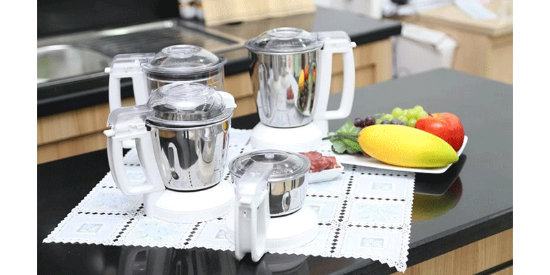 Máy xay đa năng có bộ 2 cối với chất liệu inox sáng bóng giúp xay được lượng lớn thức ăn cho gia đình, xay nhuyễn nhiều loại thực phẩm và dễ dàng cất giữ.
