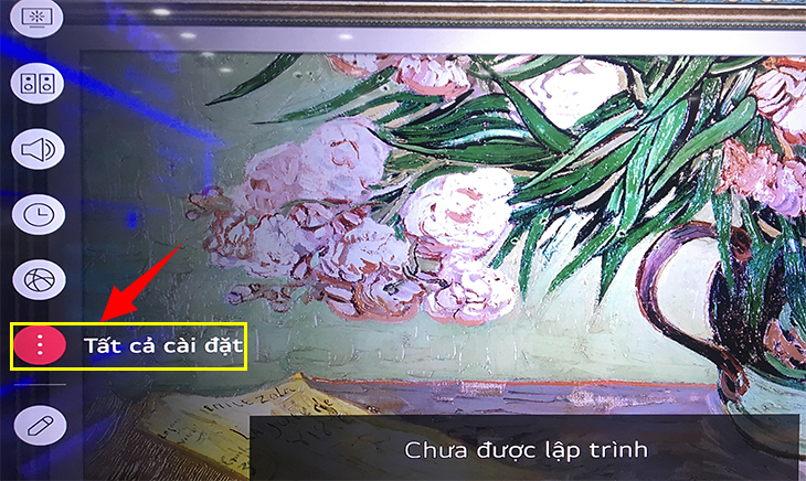 Bước 1: Bạn nhấn vào nút "Setting" trên remote để về giao diện cài đặt của tivi.