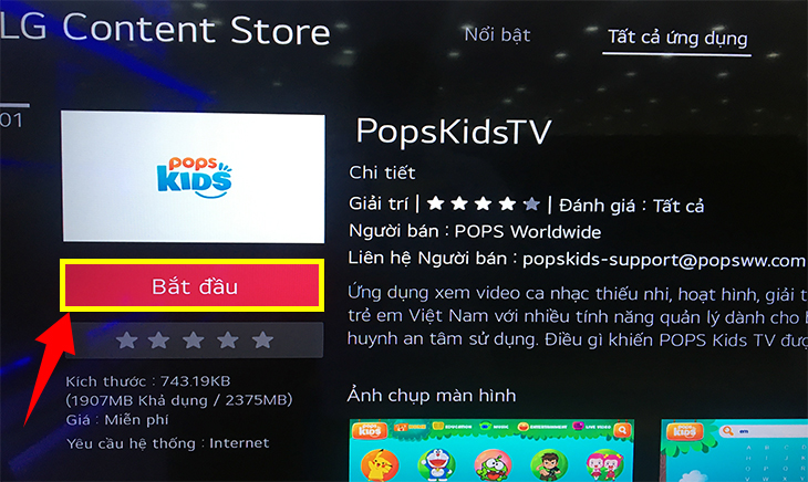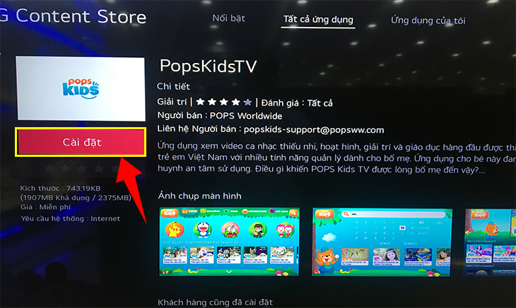 Bước 6: Chọn mục "Cài đặt"/"Install" và tivi sẽ bắt đầu tải ứng dụng về.