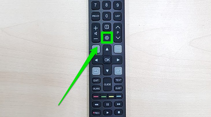 Bước 1: Tại giao diện Home của tivi, bạn nhấn "Nút răng cưa" trên remote để mở bảng cài đặt của smart tivi TCL.