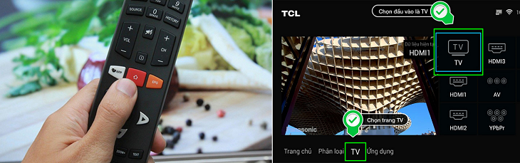 Bước 1: Nhấn nút Home trên remote >> Chọn TV.