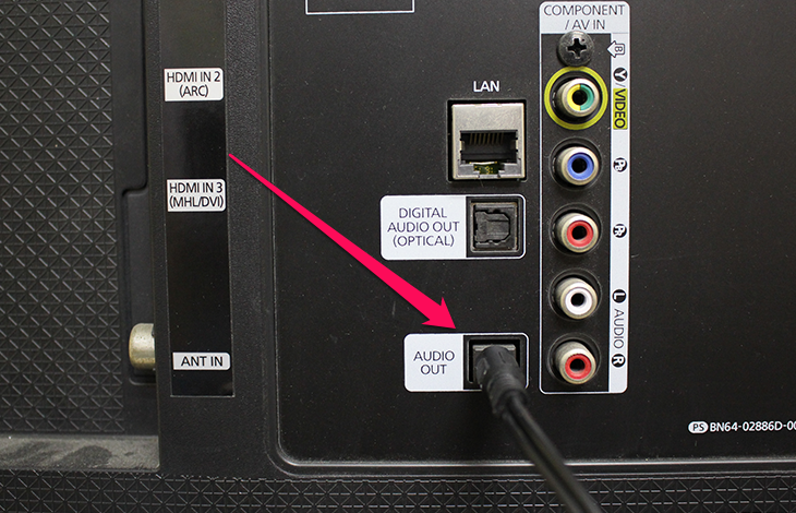 Bước 2: Gắn dây vào cổng xuất âm thanh của tivi