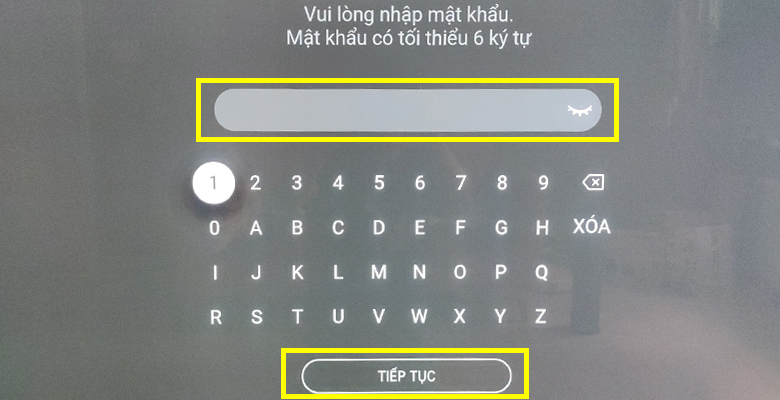 Bước 5. Bạn tạo mật khẩu cho tài khoản VieOn. Độ dài mật khẩu tối thiểu 6 ký tự bao gồm: chữ, số.