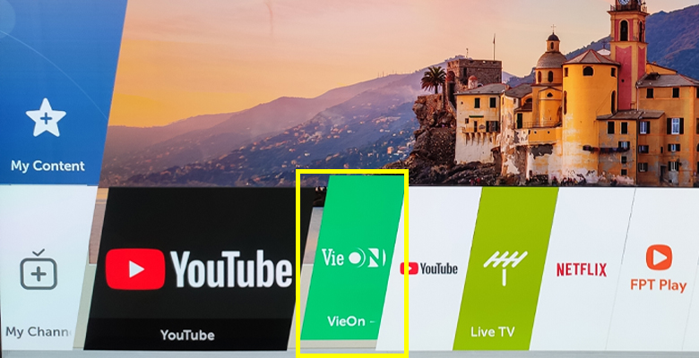 Bước 1: Bạn mở ứng dụng VieON trên thanh ứng dụng màn hình tivi LG.