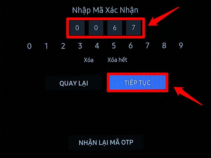 Bước 9: Nhập mã kích hoạt bạn vừa được gửi bằng điều khiển và chọn "Tiếp tục".
