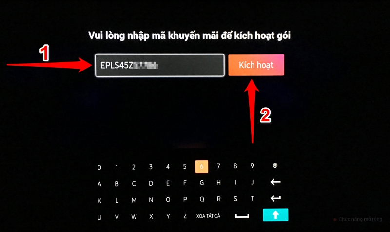 Bước 9: Bạn nhập mã code khuyến mãi vào (1) > chọn "Kích hoạt" (2).