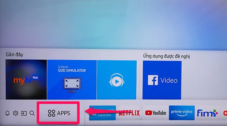 Bước 1: Bạn nhấn nút "Home" trên remote tivi sau đó chọn mục "Apps" để vào giao diện ứng dụng.