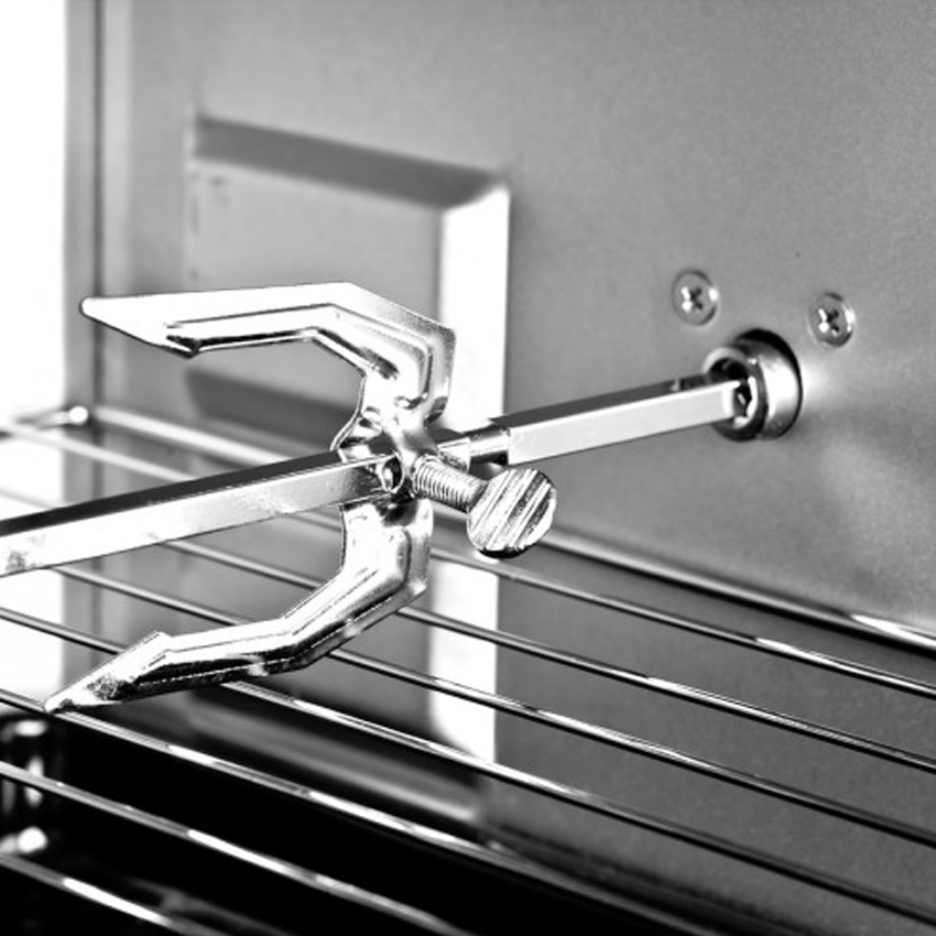 Lò nướng có xiên quay làm cho thức ăn được quay đều khi nướng, không lo bị cháy khét.