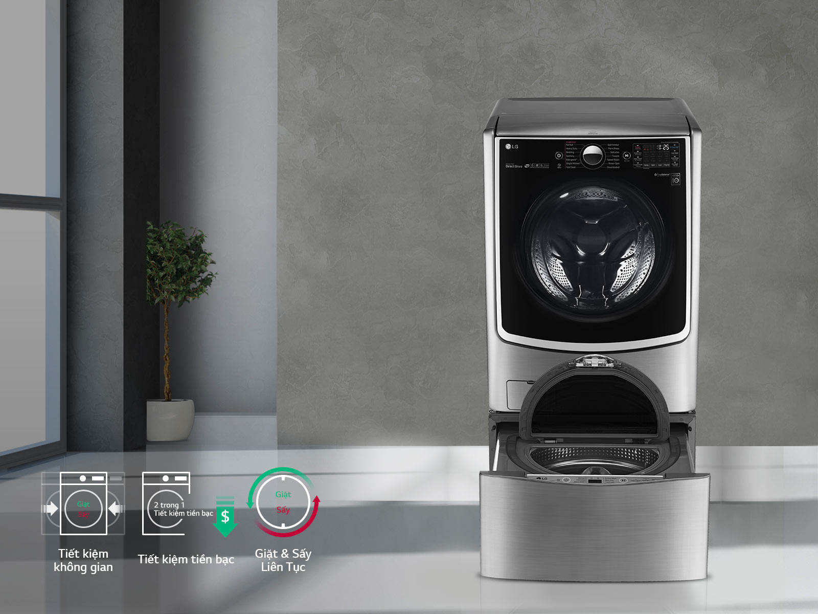 Máy giặt sấy LG là một trong những công nghệ dẫn đầu của chúng tôi. Giúp tiết kiệm không gian hơn trong ngôi nhà của bạn, từ đó dành thêm khoảng không cho những sinh hoạt trong gia đình. Máy giặt sấy LG đồng nghĩa với việc bạn không cần mất thêm chi phí mua một máy sấy riêng nhưng vẫn có thể giặt và sấy quần áo một cách hoàn hảo.