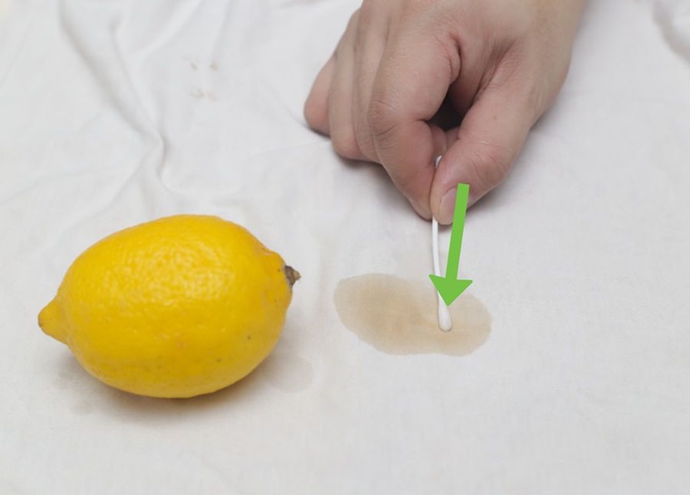 Thấm ướt những đốm đen li ti, mốc trên áo bằng nước cốt chanh rồi đem đi phơi nắng vài giờ, nhiệt độ của mặt trời sẽ làm nước chanh hòa tan với vết mốc, đốm đen và bốc hơi bay hế