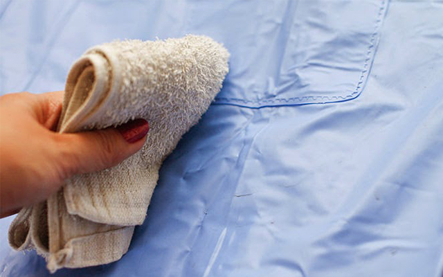 Nếu mới dùng áo mưa xong mà không làm sạch hoặc mang đi phơi khô ngay sẽ khiến áo mưa dễ bị mốc thâm đen, có mùi hôi khó chịu. Dùng bột giặt để làm sạch sẽ không có hiệu quả nhưng chỉ cần dùng vải mềm thấm giấm lau qua sẽ hết mốc.