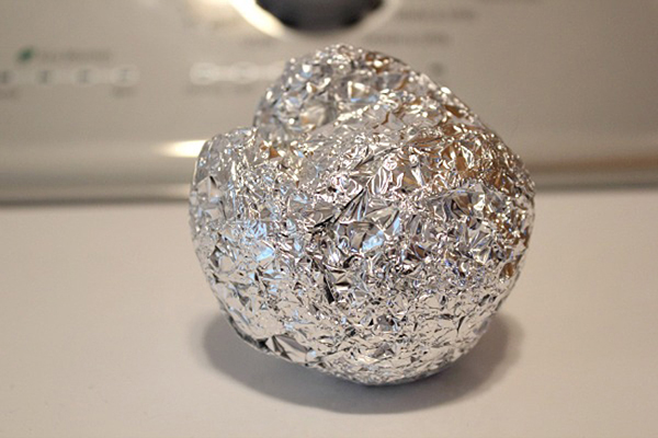 Trước tiên, bạn chuẩn bị vài miếng giấy bạc rồi lấy một miếng ra vo lại cho thật tròn. Sau đó, bạn dùng mảnh giấy bạc khác bọc bên ngoài viên giấy bạc và cũng vo lại cho thật tròn. Bạn tiền hành vo như vậy cho đến khi thấy viên giấy bạc có thể nắm vừa đủ trong lòng bàn tay thì dừng lại. Mỗi lần giặt thì bạn cho viên giấy bạc này vào chung với quần áo.