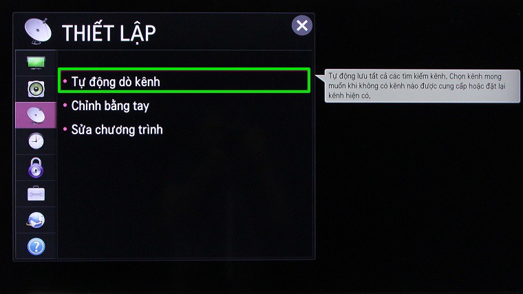 Hoặc bạn cũng có thể dò lại tất cả các kênh một lần nữa bằng cách dò kênh tự động.