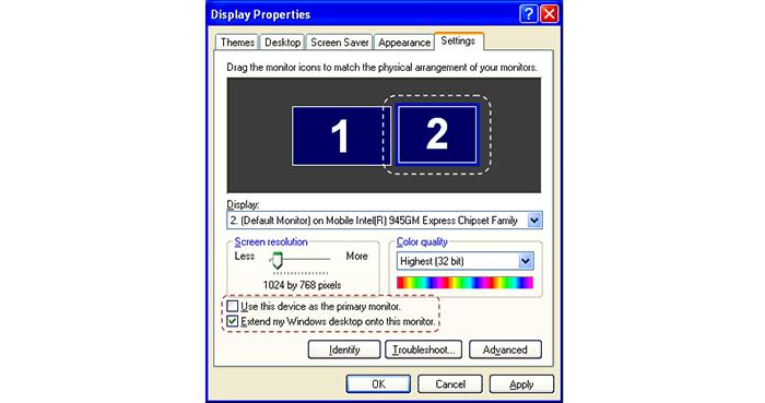 + Với laptop hệ điều hành Win XP: Chọn Control Panel --> Display --> Display Properties --> Settings --> chọn các thông số như hình bên dưới rồi nhấn OK.