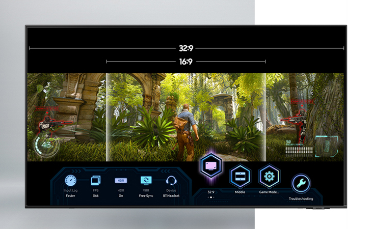 Các game thủ chuyên nghiệp sẽ dễ dàng chiến thắng trong các pha gay cấn của mọi loại game nhờ góc nhìn rộng hơn với tùy chọn tỷ lệ và vị trí khung hình trên tivi Samsung.