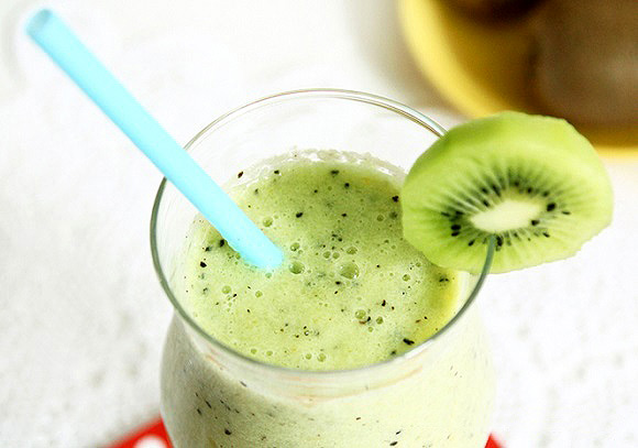 - Kiwi gọt vỏ cắt nhỏ rồi cho vào máy xay.