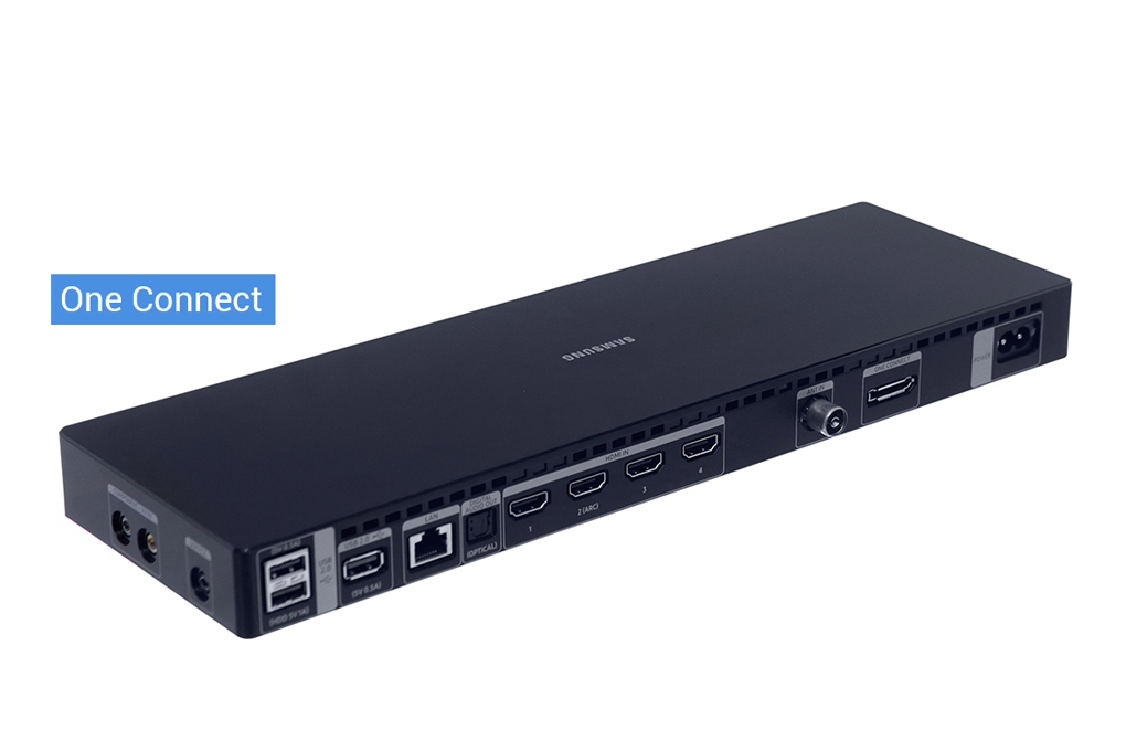 * Tính năng 'Tối giản kết nối' có nghĩa TV chỉ có một sợi dây cáp quang siêu mảnh nối với tất cả thiết bị ngoại vi khác qua cổng kết nối ngoại vi - One Connect Box. Lưu ý: dây cáp quang này không phải là dây nguồn TV và không thể kết nối với các thiết bị khác như dàn âm thanh soundbar.