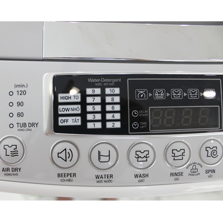 Bảng điều khiển trên máy giặt giá rẻ được thiết kế đơn giản và tiện dụng, được đặt ở vị trí dễ nhìn với màn hình rõ nét. LG có các loại máy giặt có bảng điều khiển tiếng Anh và tiếng Việt để bạn có thể chọn và sử dụng phù hợp với gia đình.