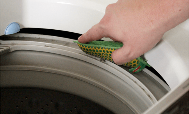 Dùng miếng vải cotton thấm dấm chà xung quanh các cạnh của nắp / cửa để loại bỏ nấm mốc và cặn chất tẩy rửa.