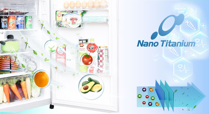 Công nghệ Nano Titanium của tủ lạnh Hitachi 203 lít R-H200PGV4 ngăn ngừa nấm mống và vi khuẩn trong không khí, đồng thời khử đi mùi hôi khó chịu có trong tủ. Chính vì thế, thực phẩm sẽ được tươi ngon hơn trong thời gian dài.
