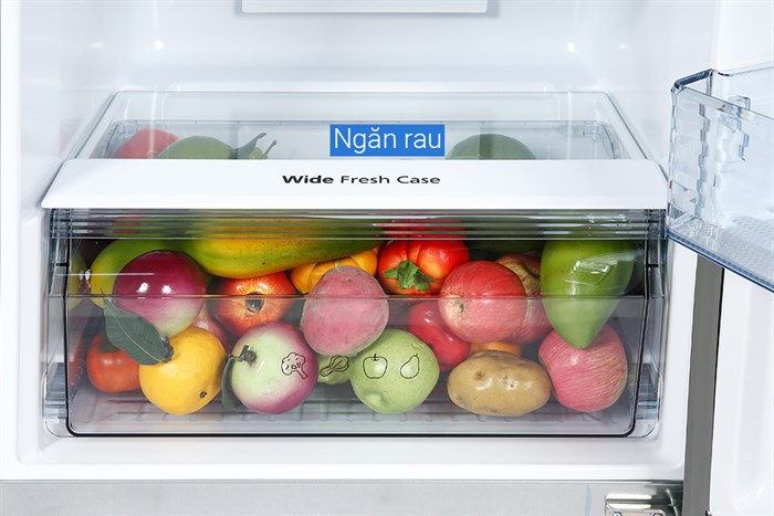Tủ lạnh Panasonic NR-TL351VGMV inverter 326 lít giá rẻ được trang bị ngăn rau quả lớn Wide Fresh Case với dung tích lên đến 30 lít, cho phép bạn dễ dàng lưu trữ các loại rau củ kích thước lớn như bắp cải, dưa hấu hay cần tây mà không lo chật chội. Nhờ khả năng duy trì độ ẩm tối ưu, ngăn chứa giúp rau củ luôn tươi xanh, mọng nước và giữ trọn dinh dưỡng trong suốt thời gian bảo quản. Đây chính là lựa chọn hoàn hảo cho gia đình yêu thích sự tiện lợi và lối sống lành mạnh.