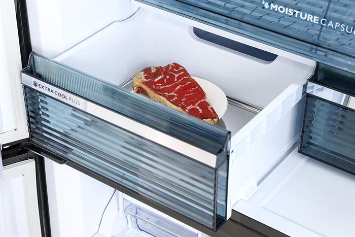 Ngăn rau Moisture Capsule duy trì độ ẩm tối ưu, giúp rau củ và trái cây tươi lâu, hạn chế héo úa, phù hợp cho gia đình có nhu cầu dự trữ thực phẩm trong nhiều ngày.