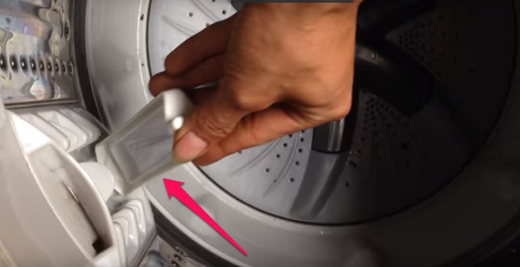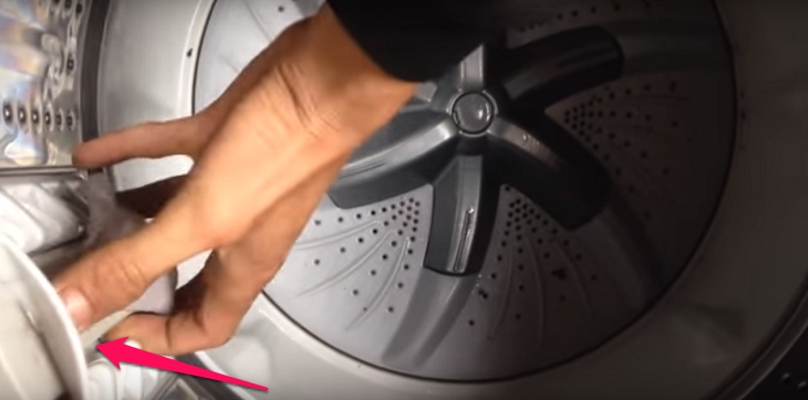 Bước 1: Xác định vị trí của túi lọc. Túi lọc nằm phía trong của lồng giặt.